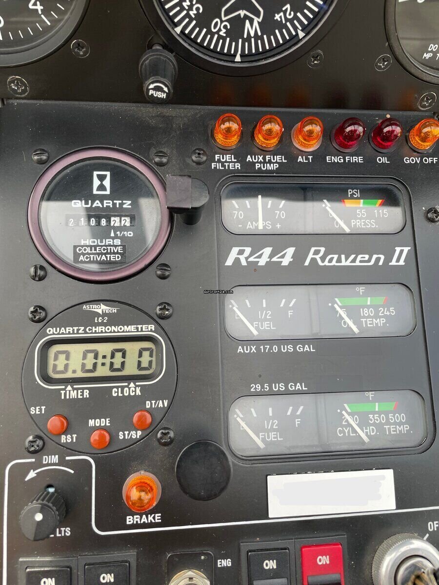 | Übersicht | | Typ: | Helikopter (Kolbenmotor) | | Hersteller: | Robinson | | Modell: | R44 Raven II | | Baujahr: | 2011 | | Serien-Nr.: | 13095 | | Eigenschaften: | Stets hangariert | | Jahresnachpr.: | 3/2026 | | Standort: | Italien, BERGAMO, LIME | | Gesamtzeit (TTAF): | 2108 h | | Preis: | € 550'000 (~ CHF 507'265) | | EU-versteuert: | ja | | Anzahl Passagiere: | 3 | | Landungen: | 2971 |