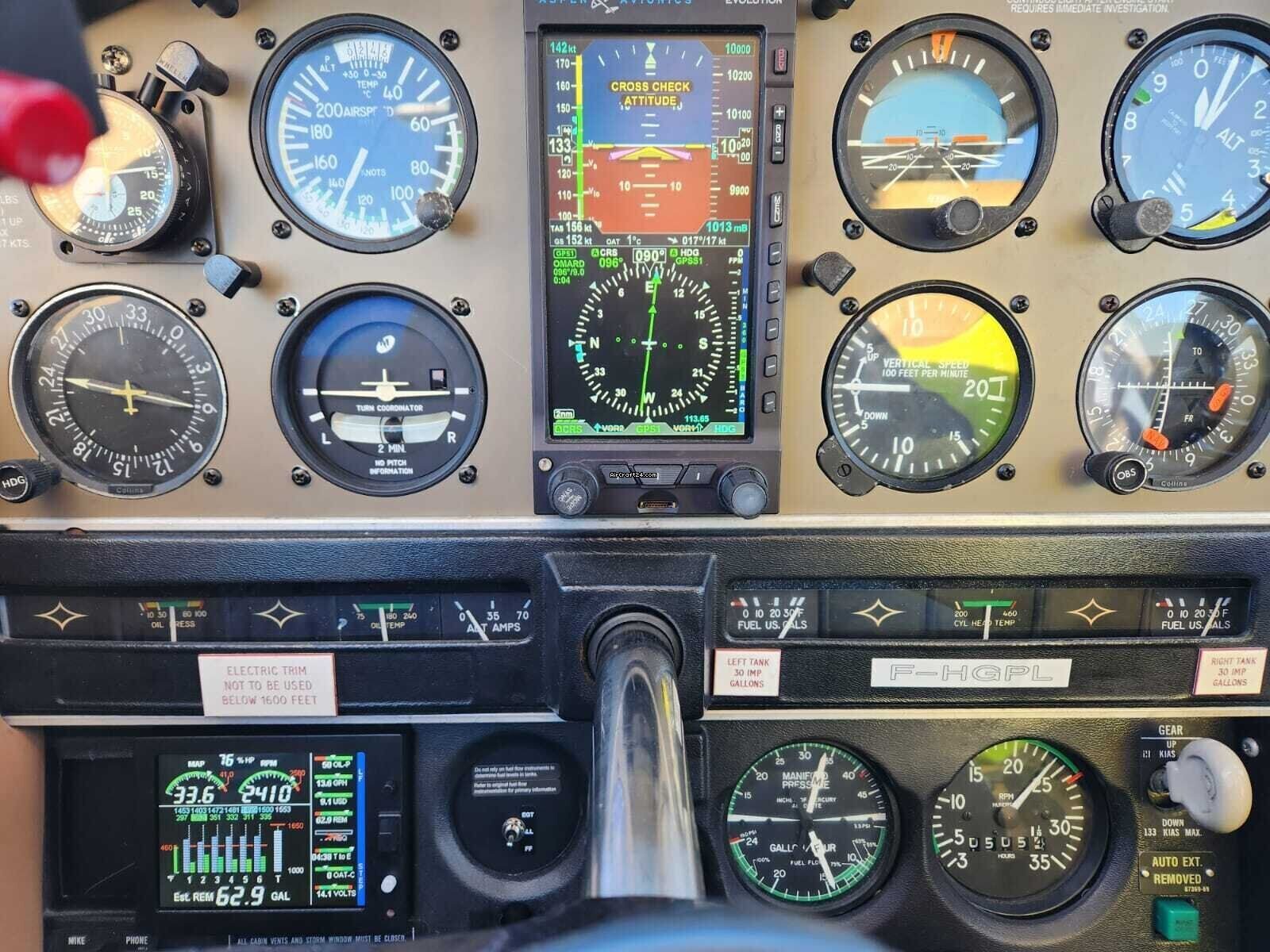 | Avionik | | Avionics: ASPEN EFD 1000 PRO, GTN 650 with WIFI & Bluetooth, PA STEC 55X, ADF, DME KN26A, GTX 330, EDM 830 (engine surv./param. recording), 2nd KX165 radio, 2nd VOR-ILS. Horizon redundancy, turn indicator. |