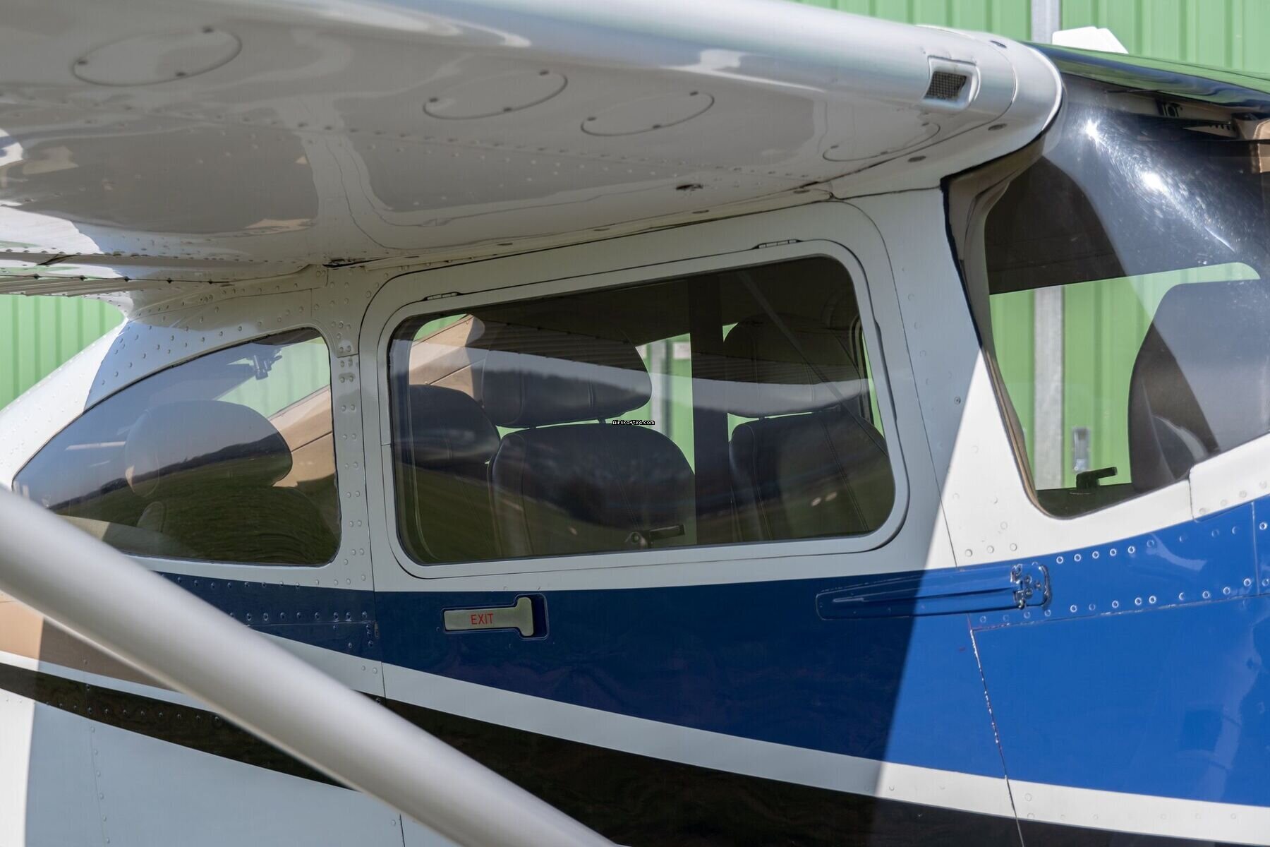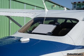 | Exterieur | | Presenting an impressive ramp presence, this 182T Skylane boasts a crisp white, and blue paint scheme with refined black and bronze detailing. The sweeping accents follow the aerodynamic lines of the fuselage, leading the eye to the high-performance polished McCauley propeller. With its clear glass and matching wheel fairings, this aircraft offers a cohesive and premium appearance that stands out on any flight line. |