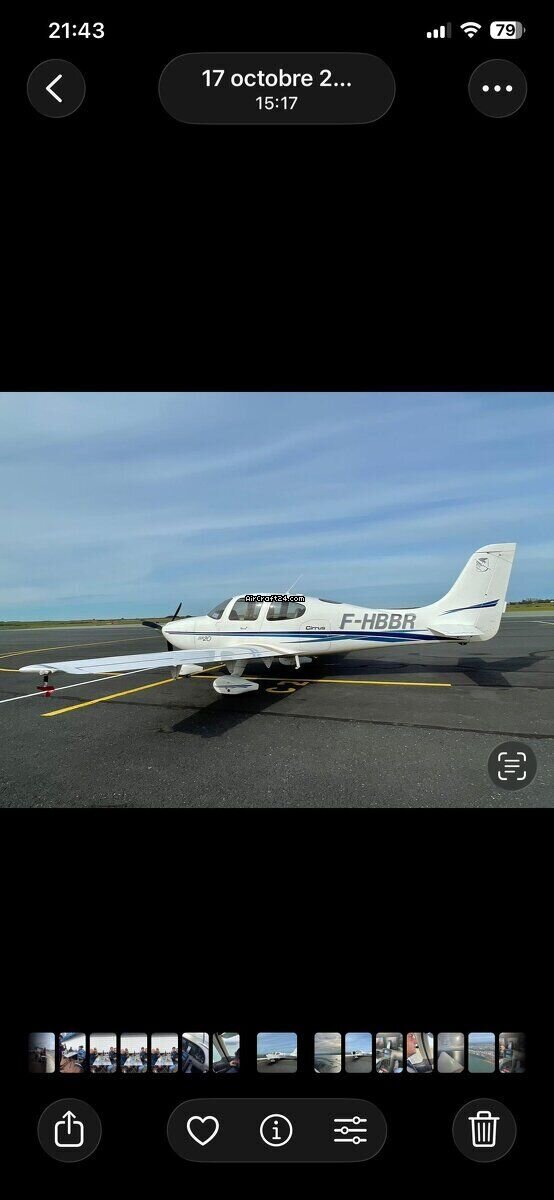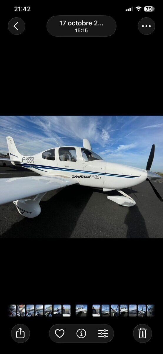 | Übersicht | | Typ: | Single-Prop | | Hersteller: | Cirrus | | Modell: | SR20-G2 | | Baujahr: | 2009 | | RegistrierungsNr.: | F-HBBR | | Serien-Nr.: | 1344 | | Eigenschaften: | Stets hangariert | | Jahresnachpr.: | 2/2025 | | Standort: | Frankreich, TOUSSUS LE NOBLE, LFPN | | Gesamtzeit (TTAF): | 3386 h | | Preis: | € 145'000 (~ CHF 133'734) | | EU-versteuert: | ja | | Anzahl Passagiere: | 4 |