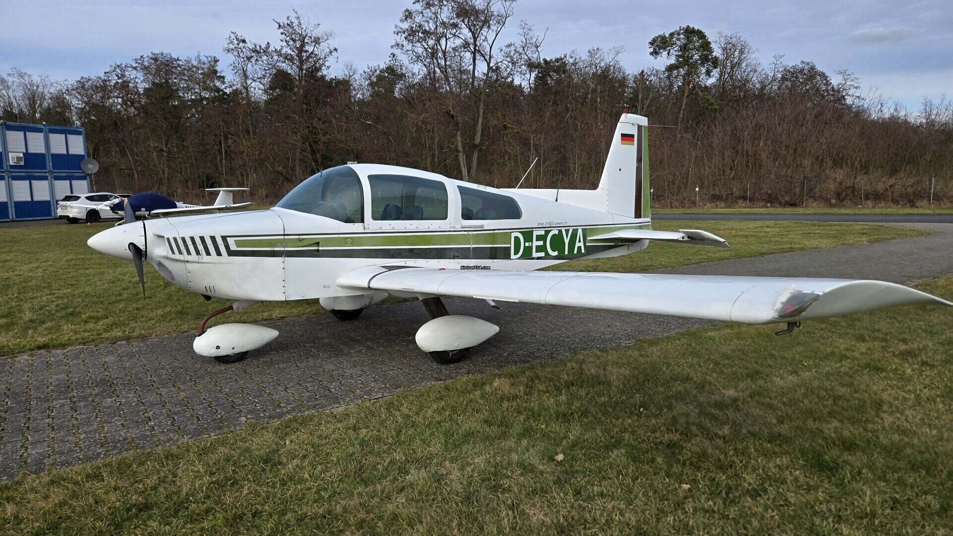 | Übersicht | | Typ: | Single-Prop | | Hersteller: | Grumman | | Modell: | AA5 Traveler | | Baujahr: | 1975 | | RegistrierungsNr.: | D-ECYA | | Serien-Nr.: | AA5-0705 | | Eigenschaften: | Stets hangariert | | Standort: | Deutschland, Aschaffenburg, EDFC | | Gesamtzeit (TTAF): | 4458 h | | Preis: | € 71'400 (~ CHF 64'553) | | Landungen: | 2406 |